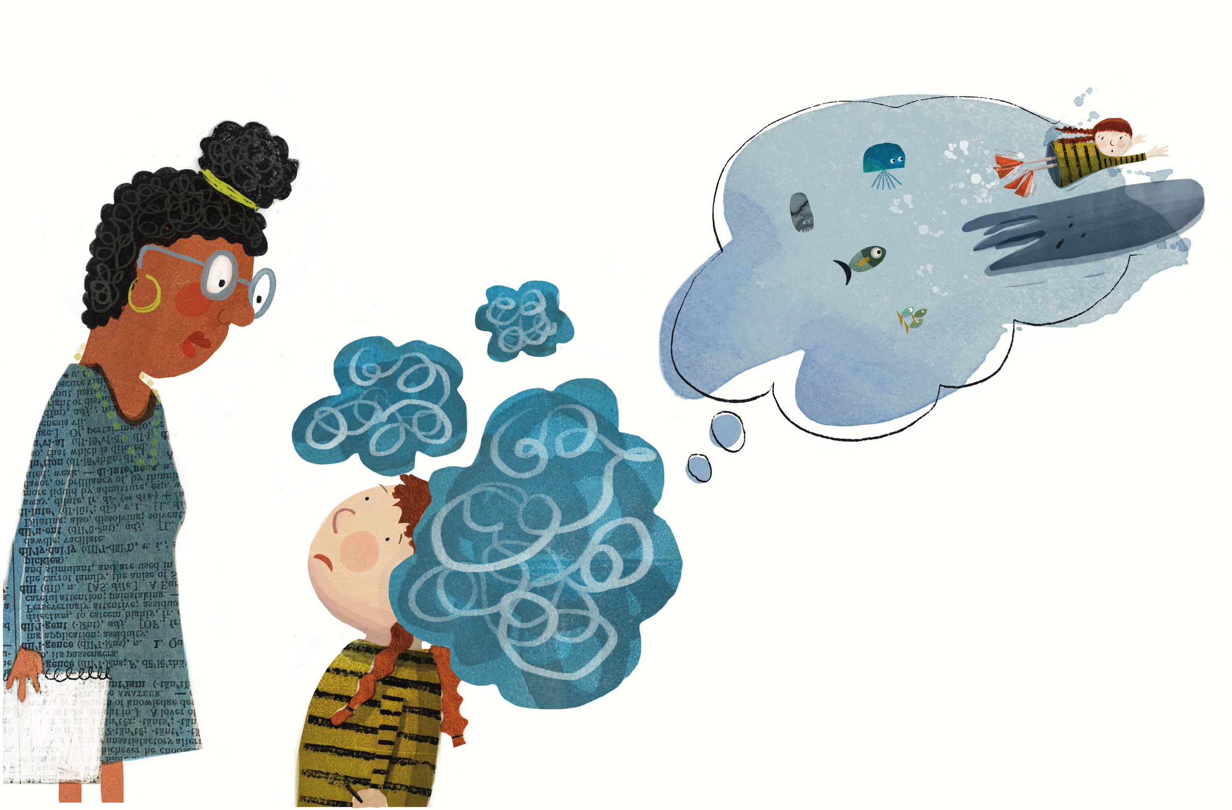 But sometimes it causes trouble. She folds the little brother she’s supposed to be feeding and feeds the socks she should fold. Worst of all, Daisy longs to be line leader on a field trip to the aquarium, but the job is reserved for whoever can listen best to a lesson on octopuses. As hard as she tries, Daisy just can’t keep the distracted clouds from rolling over her head.